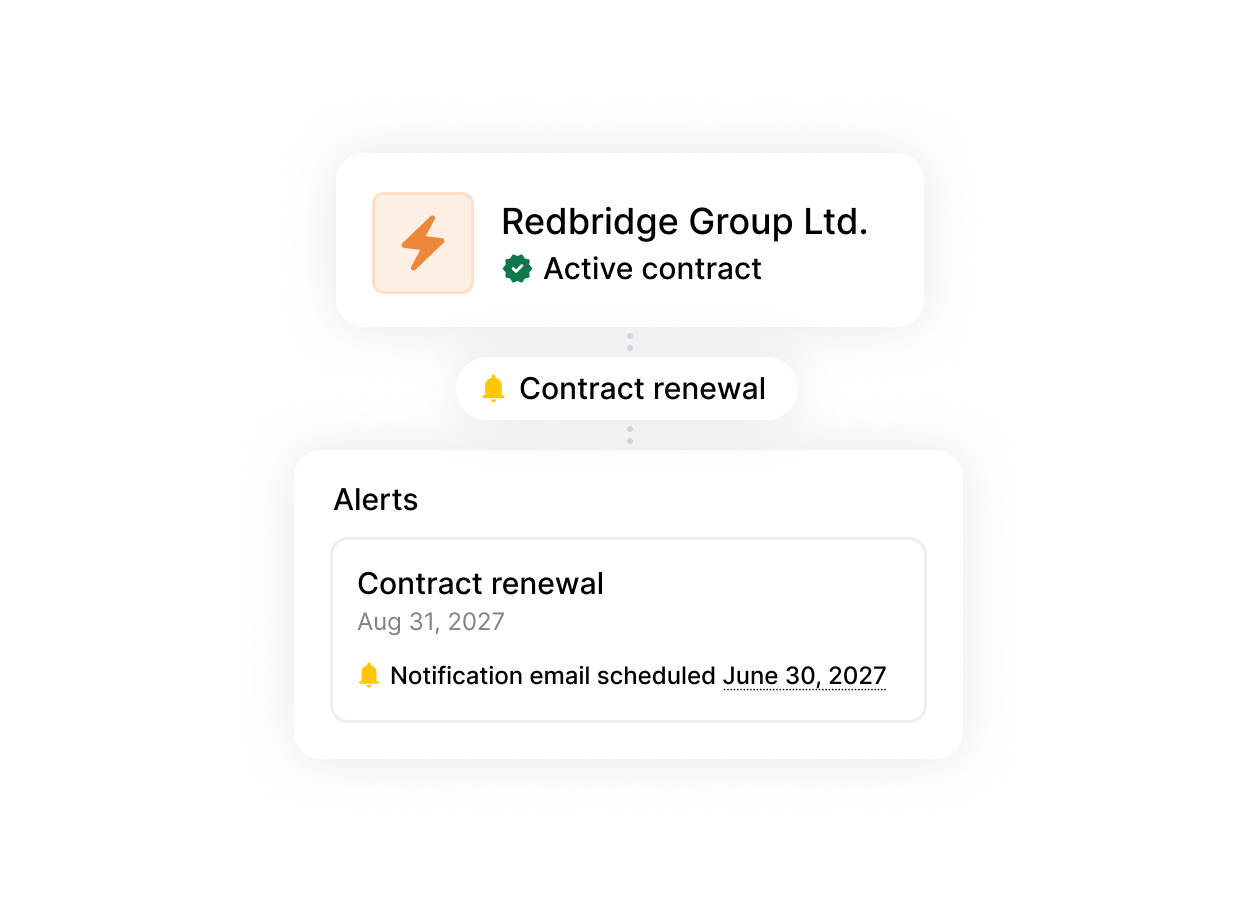 Set up alerts to be sent on a specific date, whether that's a reminder to review a renewal in five months or a prompt to book a meeting with the supplier before terms expire.